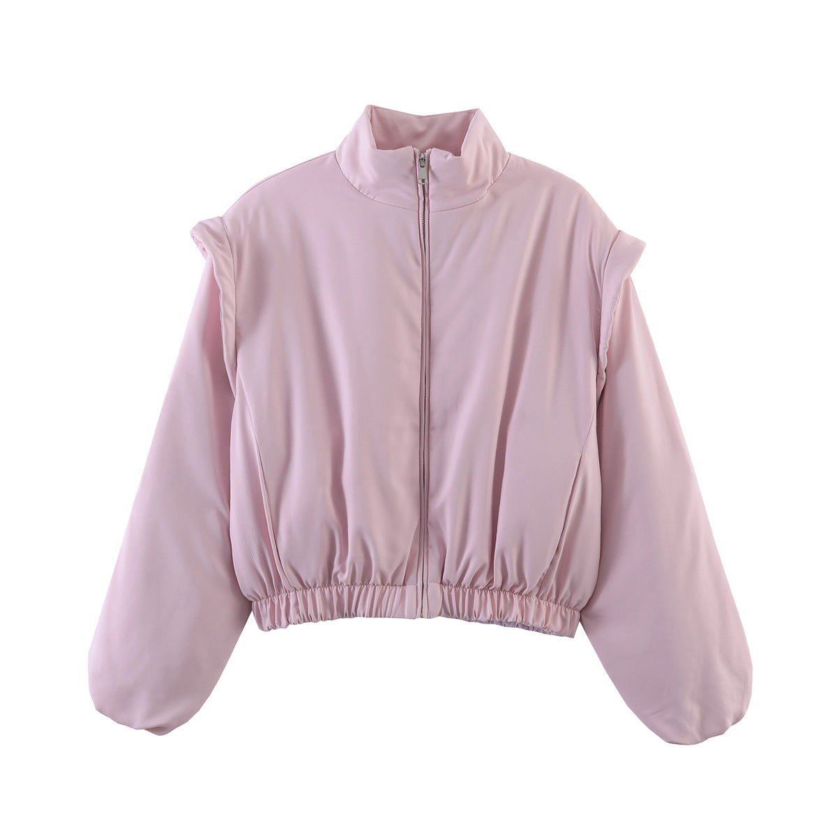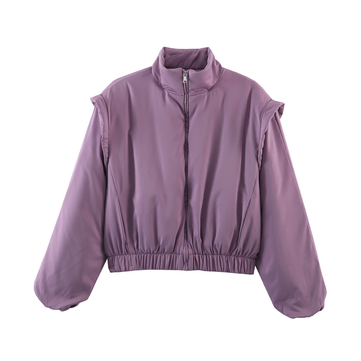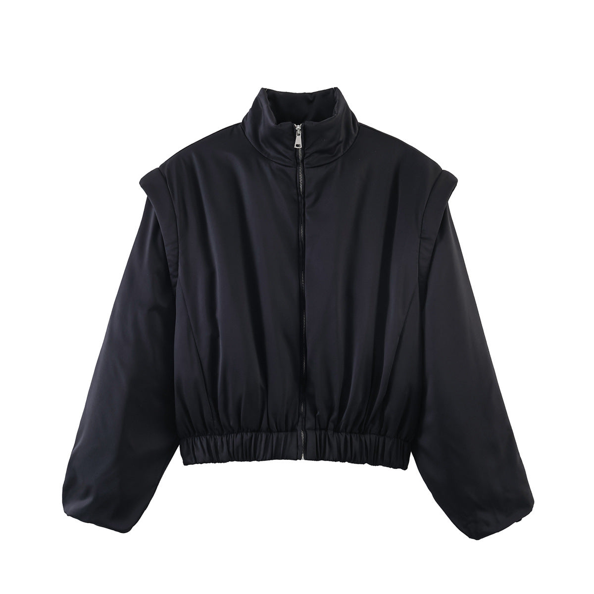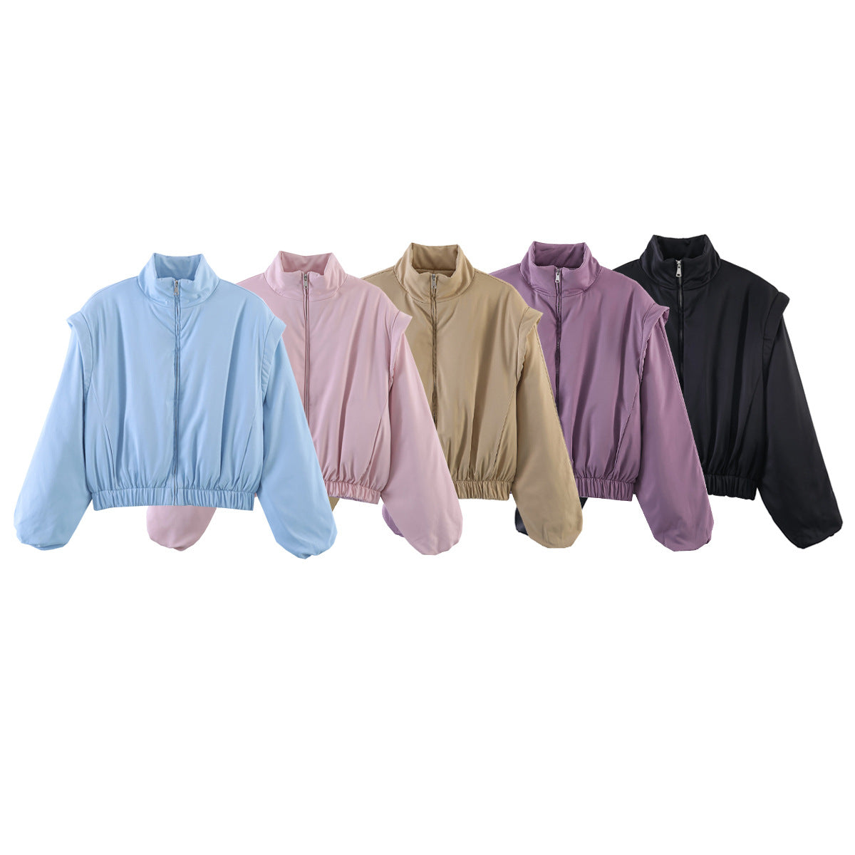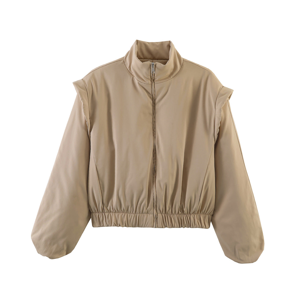 Chaqueta corta de algodón con cuello alto de moda para mujer